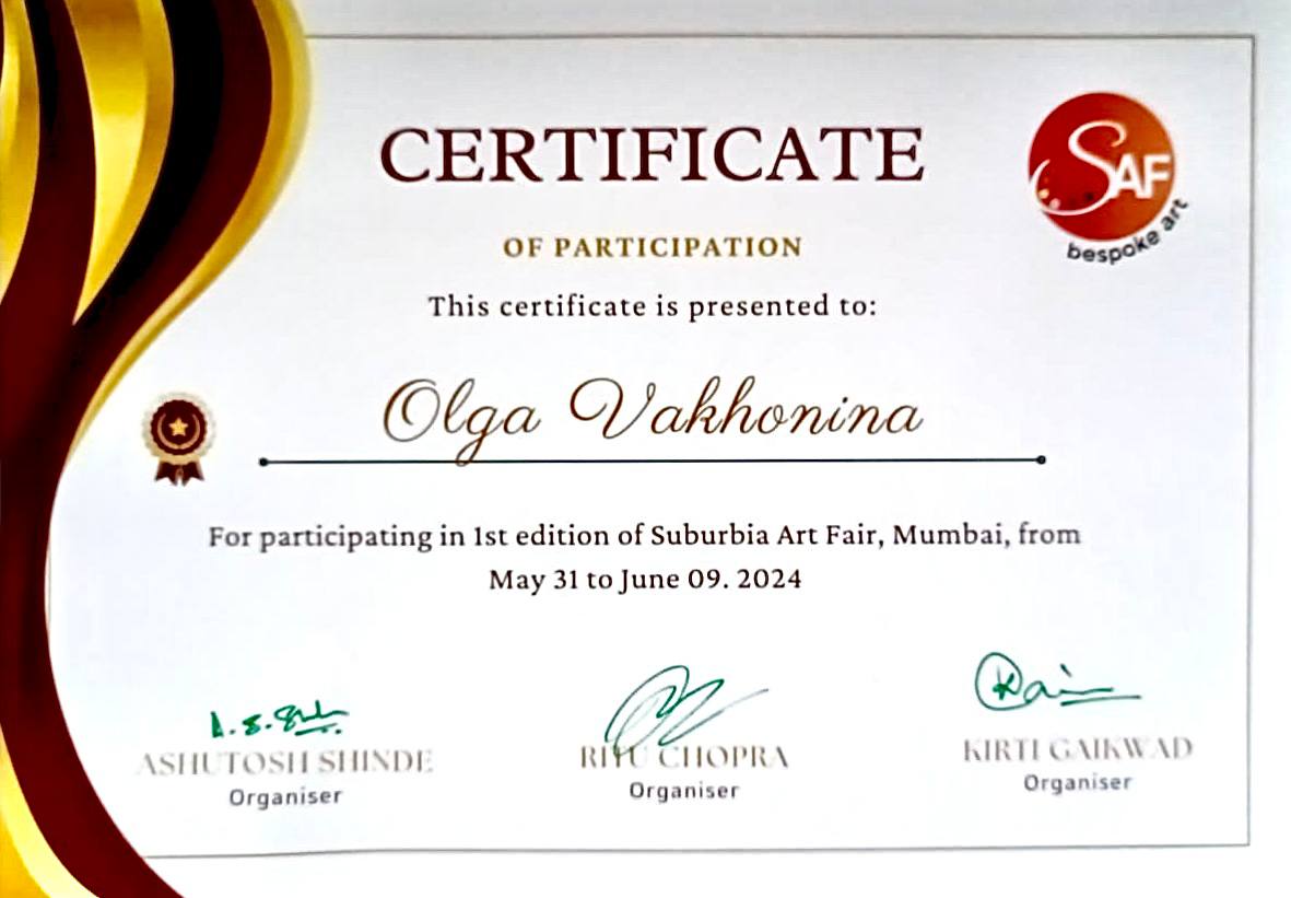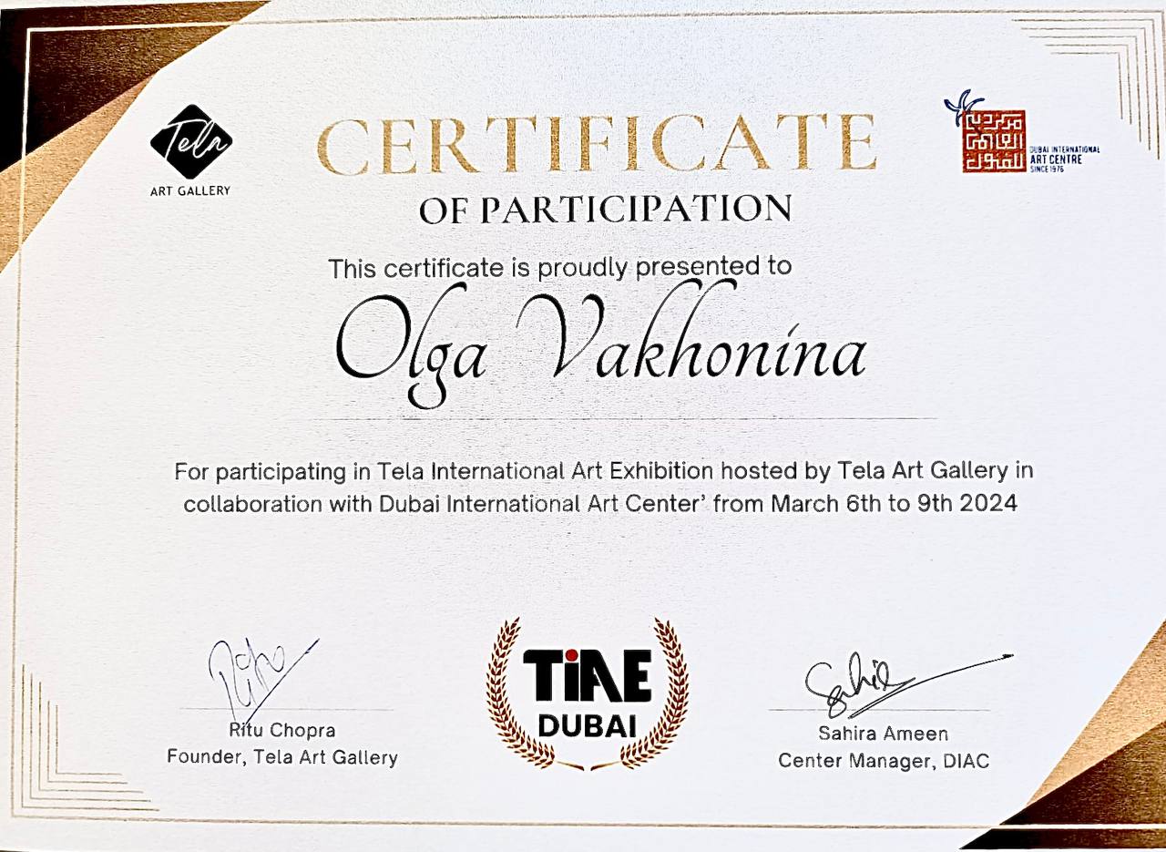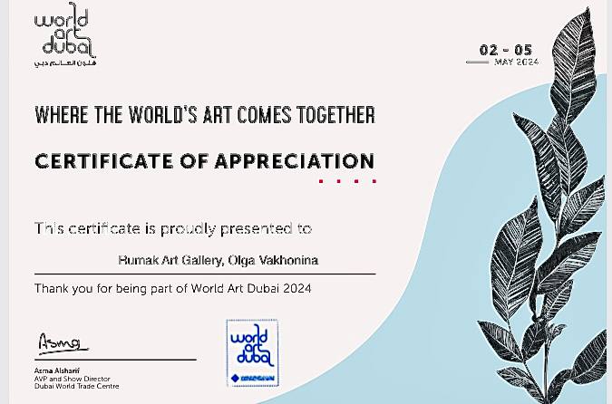 2024 "World Art Dubai", international exhibition, Dubai, UAE, participation through "Rumak Art Gallery", World Trade Centre.