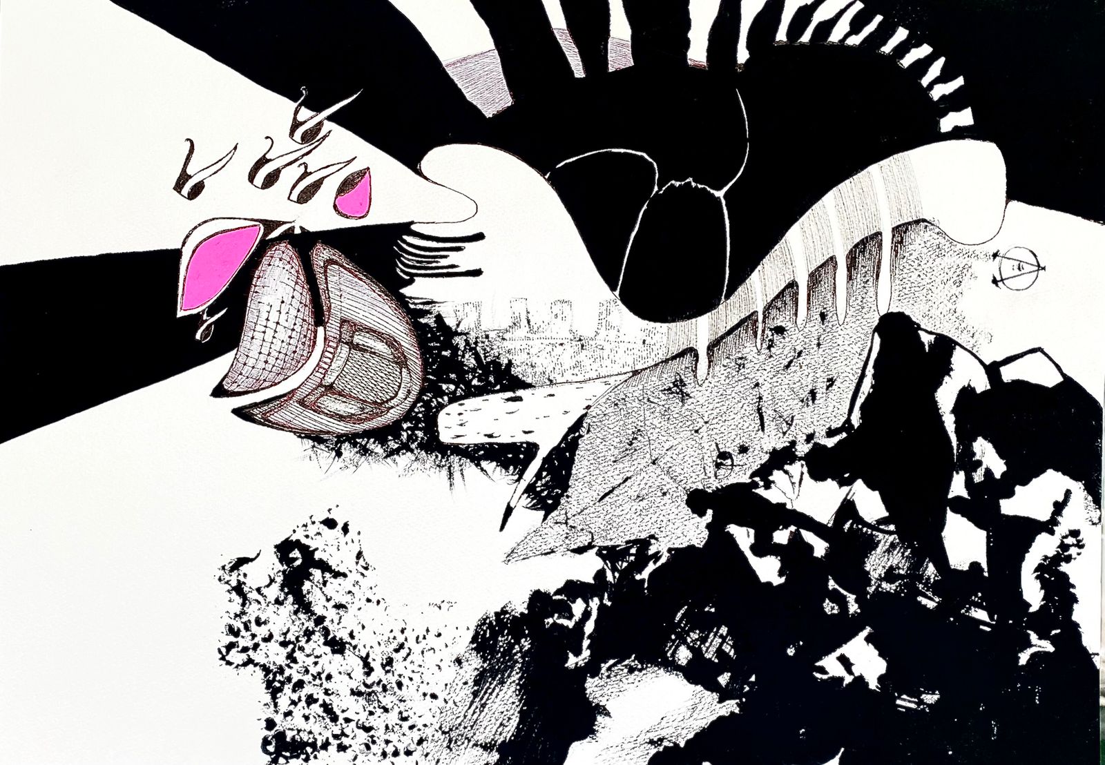 MATERIAL: watercolor paper, capillary pen, ink